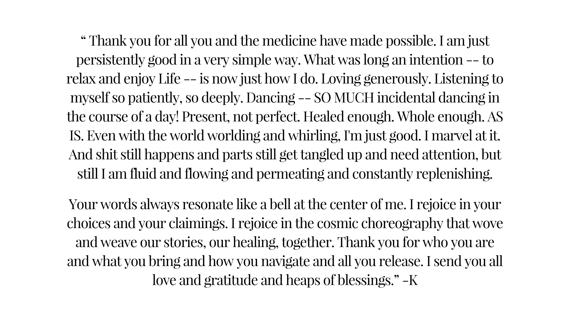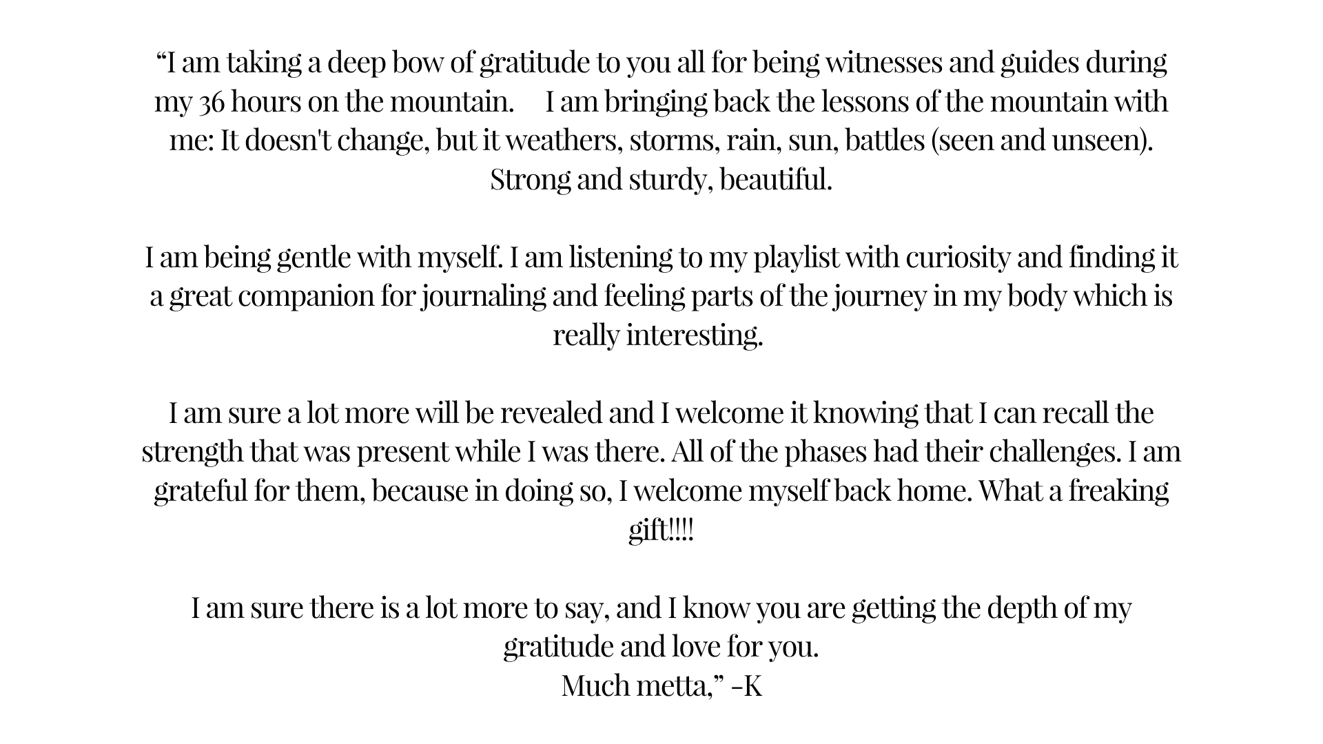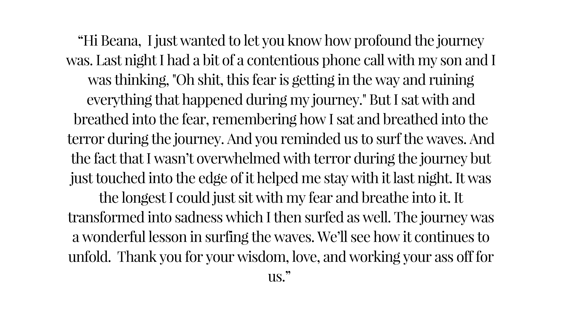 This is the full experience. A deep dive, a long walk, a held hand, and a well-worn path to a deep layer of being and living.