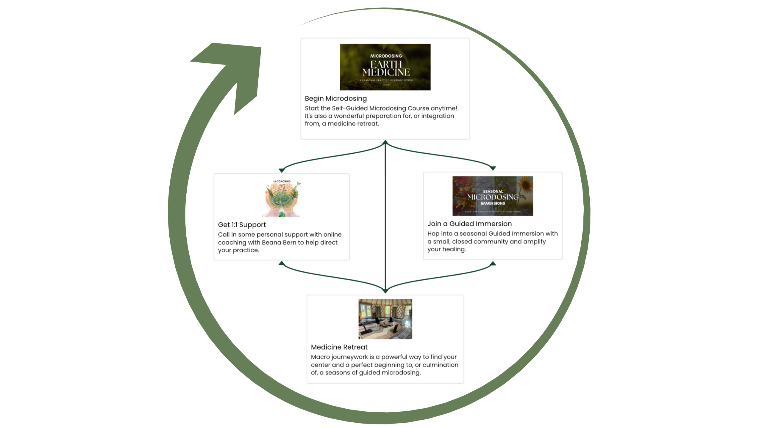 Beana has made an organic ecosystem to walk the medicine path and, no matter where you begin, you will get where you're going! Whether you start with the Self-Guided Course, a Seasonal Guided Immersion, or a Medicine Retreat, the journey itself will reveal the way forward and you can trust in the unfolding.