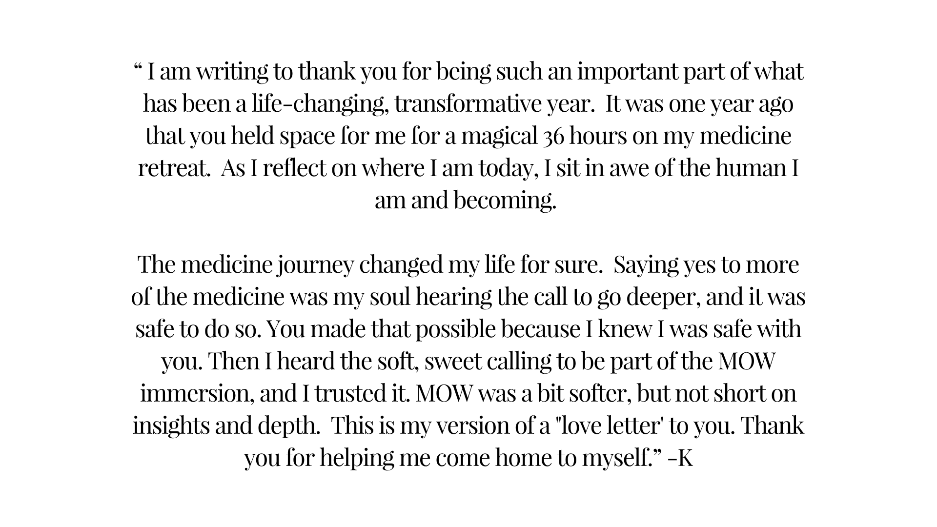 Profoundly effective at helping people meet themselves.